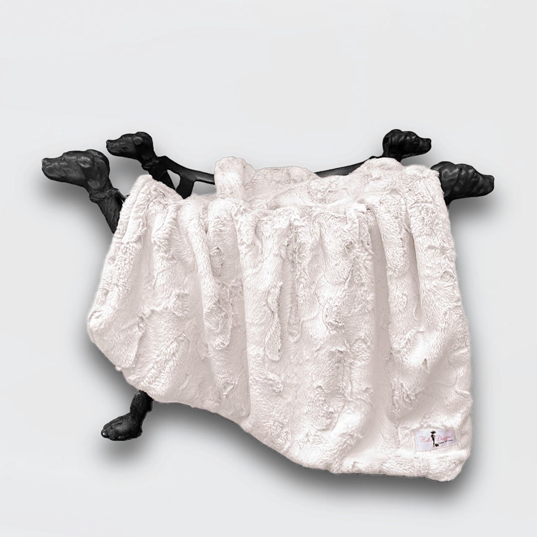 The Dolce Vita Dog Blanket by Hello Doggie is made of luxurious soft-cuddle fabric. Available in four beautiful colors this bed collection is perfect for cuddle time. It is easy to care for machine wash on a gentle cycle, no bleach or fabric softener, dry on low heat or air dry for brand new look every time. Matching bed sold separately.  Dimensions   Small Blanket - 17" x 14"  |  For dogs up to 5 Lbs MSRP - $49.99 Large Blanket - 34" x 29"  |   For dogs up to 20 Lbs MSRP - $79.99 Throw Blanket - 59" x 59"  |  For dogs up to 100  Lbs + MSRP - $360.00  *Blanket is handmade and sizes may vary slightly. Made in USA.