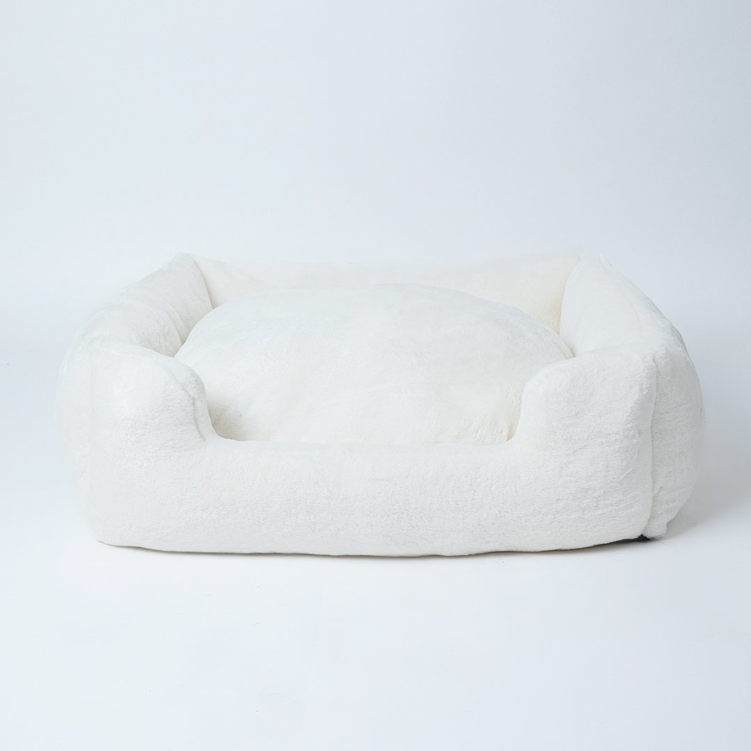 Your large fur baby isn't just a pet, they're royalty! Treat your pup like the king and queen with our new Big Baby Collection by Hello Doggie. This collections offers your pooch their own luxurious bed, where they can snooze away in comfort with plenty of room to stretch out and relax. Made from soft plush fabric and 100% poly-fiber fill, this bed features a non slip floor to hold the bed in place and a removable pillow for easy care. Wash on gentle cycle, no fabric softener or bleach. Air dry or tumble on low.   One Size   - For dogs up to 50 - 70 lbs  Outside - 37" L x 30" W x 10" H   |   Inside - 25" L x 21" W x 6" H |    Bolster - 6"in MSRP - $286.00 *Bed is handmade in the USA and sizes may vary slightly. Made in USA.