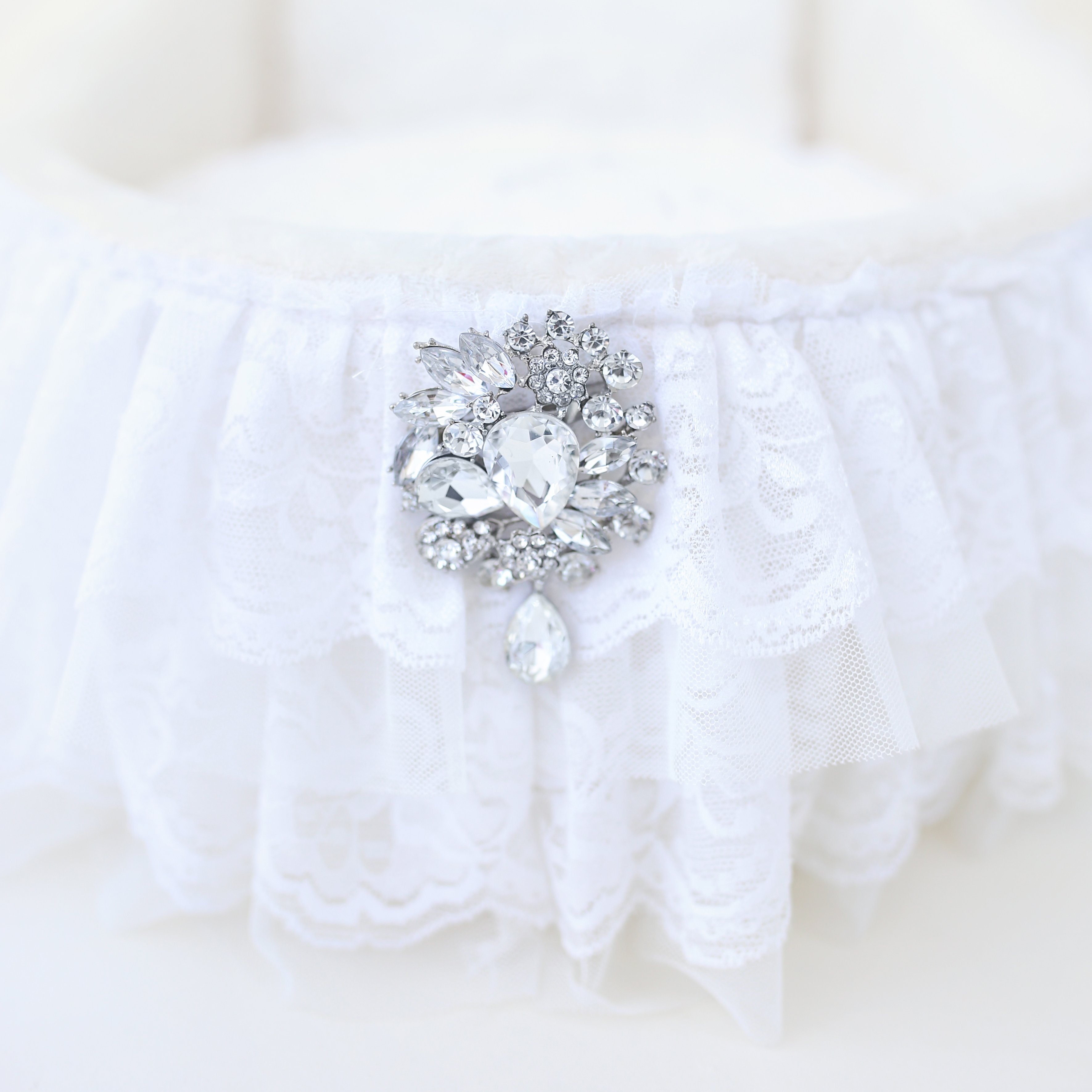 For that beautiful addition to your family, you'll want your pup to have sweet beginnings in our adorable Crib Bed by Hello Doggie, to lull your baby into sweet dreams. Trimmed in two-tiered romantic handmade lace, our cribs also feature a bouquet drop crystal brooch and removable pillow for easy care. Pair with any Hello Doggie Blanket. You'll be the envy of all your friends! Our collection offers four soft colors to choose from. One Size - *20" x 14" x 5 1/2"   |   Pillow inside - 18" x 12"   |   For dogs up to 6 Lbs MSRP - $177.99 *Bed is handmade and sizes may vary slightly. Made in USA.